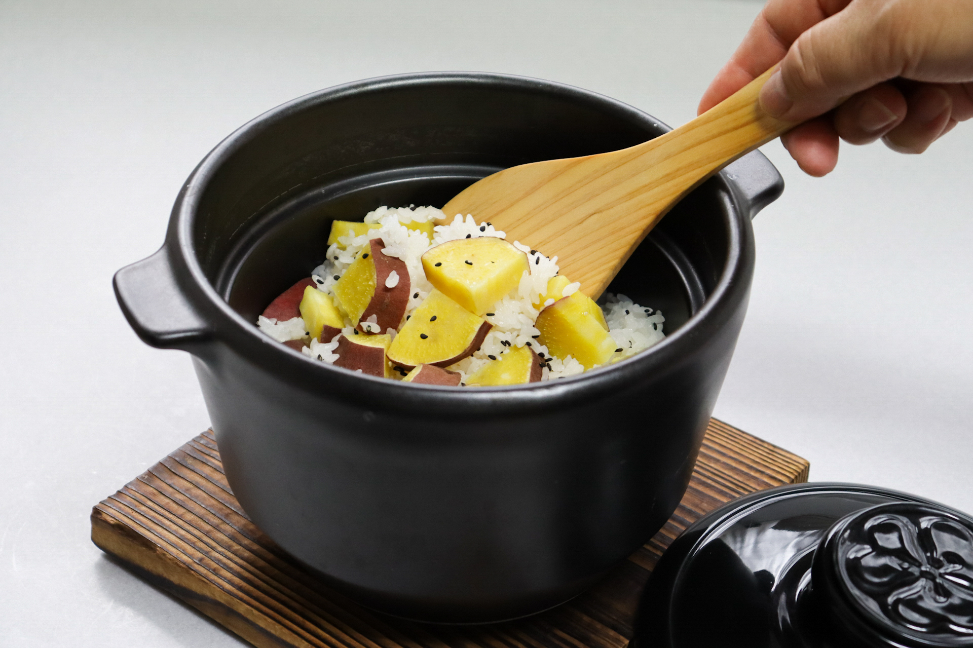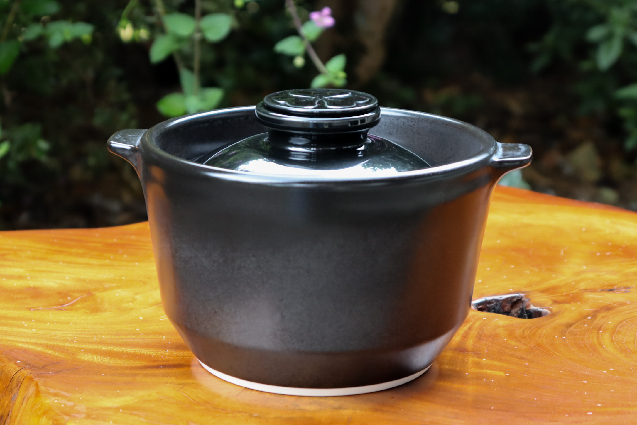 モダンでシックなデザインであるだけでなく、 遠赤外線放射をさらに向上させるために、特殊耐熱陶土に新開発の釉薬を施釉しています。これにより、お米の芯まで熱が通り、ふっくらしたごはんが炊けます。